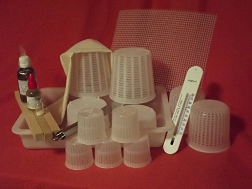 Sie bekommen mit diesem Set alles (außer Milch) was Sie benötigen um leckeren Frischkäse und Molke selber herzustellen. Dazu können Sie die im Handel angebotene pasteurisierte Frischmilch verwenden. Der von Ihnen hergestellte Frischkäse kann mit Kräutern und Gewürzen verfeinert werden und ist damit ein Produkt das genau Ihrem Geschmack und Qualität entspricht. Sie bekommen folgende Artikel: 11 Frischkäseformen wie abgebildet, eine Abtropfschale, drei Buchenholzleisten, ein kleines Käsetuch 35cm x 35cm zur Bereitung von italienischer Ricotta, ein Joghurt-Thermometer, 30 ml Lab, 50 ml Kalziumchlorid zur Herstellung von Käse aus pasteurisierter Milch, eine Säuerungskultur , Anleitung zur Herstellung von Frischkäse mit Bildern als PDF-Datei. Da Frisch- und Weichkäse durch häufiges Wenden ausreichend entmolkt sind Pressdeckel nicht erforderlich und im Set auch nicht enthalten. Die Verpackung der Zusatzstoffe kann in Material und Form von der Darstellung auf dem Bild abweichen. Sobald Ihre Bestellung bearbeitet ist, erhalten Sie von uns ein Email mit der Anleitung zu dem Set im PDF- Format.