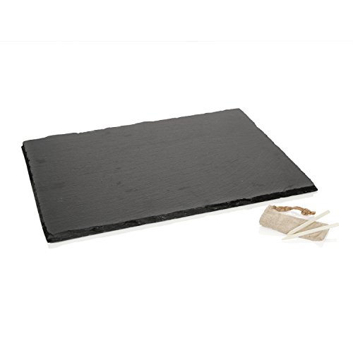 Schiefer ist von Natur aus undurchdringlich, hygienisch, beständig gegen Lebensmittelreste und Bakterien – Ideal, um Käse und Tapas zu präsentieren. Kräftiges Schieferbrett mit einem robusten Look, hübsches Format mit Antirutsch-Noppen und zwei Speckstein-Stiften. Gefragt in Restaurants, die Ihre Gerichte gerne auf eine Tafel schreiben. Wie in einer spanischen Tapasbar. Details: , Geruchslos und antibakteriell, das sind die Vorteile von Schiefer , Inklusive Kreide , Spülmaschinenfest Maße: Breite: 40 cm Länge: 30 cm Höhe: 0,8 cm Material: Schiefer Farbe: Schwarz Hersteller-Artikelnummer: 359011 , Lieferumfang:1 Boska Explore Collection Käsebrett XL Schiefer 2 Boska Explore Collection Kreide-Stifte