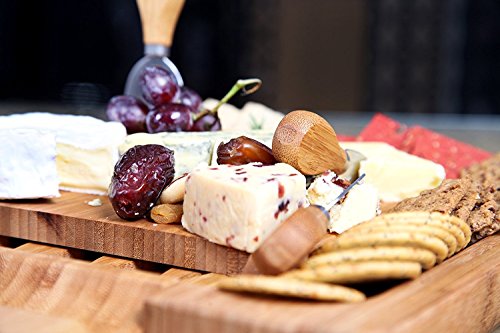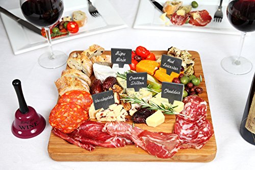 Kenley Käseschneidebrett mit Besteck Set – 4 Käsemesser und 4 Schiefer Etiketten – Bambus Käsebrett Käse Brett Käseplatte aus Holz