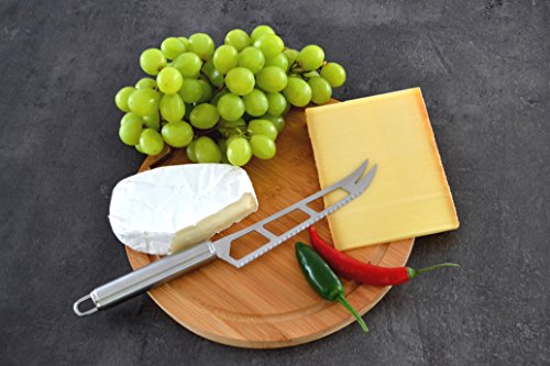 Lieben Sie Käse ? Wollen Sie als Gastgeber auch Ihren Gästen verschiedene Käsesorten auf einer Käseplatte ansprechend servieren ? Mit dem ZEISIG Premium Käsemesser können Sie spielend leicht Scheiben vom Käselaib schneiden, sowie Weichkäse, auch Ziegenkäse und Schafskäse portionieren und aufschneiden. Kleinere Stücke können mit der Doppelspitze einfach vom Käseteller aufgespießt werden. Auch bei der Zubereitung von Käsehäppchen ist es ein idealer Helfer in der Küche. Das Messer überzeugt nicht nur durch sein zeitloses modernes Design, es ist außerdem sehr stabil, liegt gut in der Hand und ermöglicht Ihnen müheloses und komfortables Arbeiten. Die großen Aussparungen in der Klinge sorgen dafür, dass der Käse beim Schneiden nicht an der Klinge klebt.Nach Gebrauch können Sie es einfach in die Spülmaschine geben. Fertig. Das ist Qualität, auf die Sie sich verlassen können ! Das ZEISIG Käsemesser eignet sich auch ideal als edles Geschenk für viele Anlässe. Klicken Sie noch heute auf „in den Einkaufswagen“ und bestellen Sie Ihr eigenes ZEISIG Käsemesser.